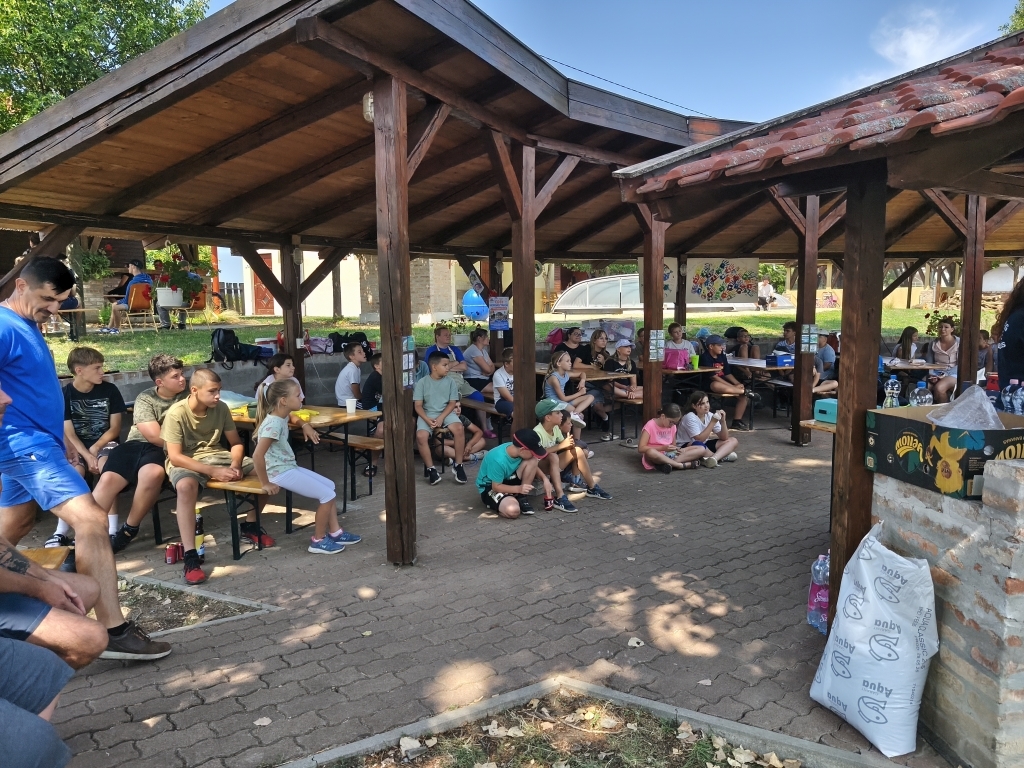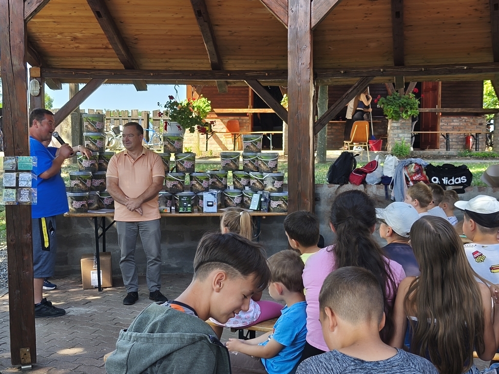 Az 5 napos gyermek horgásztábor 2025. augusztus 04. és 2025. augusztus 08. között került megrendezésre. Az 5 nap alatt megannyi érdekes és hasznos információhoz juthattak a résztvevők, azaz a leghátrányosabb helyzetű gyermekek. Betekintést nyerhettek a horgászat adminisztratív részébe, megtanulhatták a fogási napló kitöltését és annak fontosságát. Halbiológusnak köszönhetően megismerhették a hazai vizeink meghatározó élővilágát, amelyhez preparátumok, mellett élőlények és mikroszkópikus élővilág bemutatása is társult. Mentős segítségével megismerhették a gyermekek a segélyhívás folyamatát, valamint az újraélesztés menetét. A gyermekek a Sarkadi Egészségfejlesztési Irodának köszönhetően az UV sugárzással és a napégés veszélyeivel és azok kezelésével kapcsolatban hallhattak előadást. Úszómester bevonásával megismerhették a vízből való mentés veszélyeit, a szakszerű segítségnyújtás folyamatát és a sérült személy biztonságba helyezését a mentők megérkezéséig. A rendőrség prevenciós munkatársai a kábítóhatású szerek veszélyeire, a fogyasztás megelőzésére, valamint a segítségkérés lehetőségeire hívták fel a figyelmet.